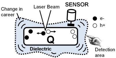 弊社のセンサはレーザ光を材料に照射して変化する電荷を検出して微小領域の電界(帯電状態)を検出します。