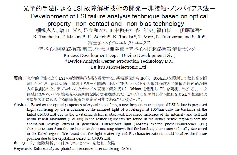 ■[15] 伊藤誠吾,”近赤外レーザ光加熱技術を用いた動的故障解析”,金沢工業大学 デバイス信頼性シンポジウム 2007 予稿集PP.276-283.